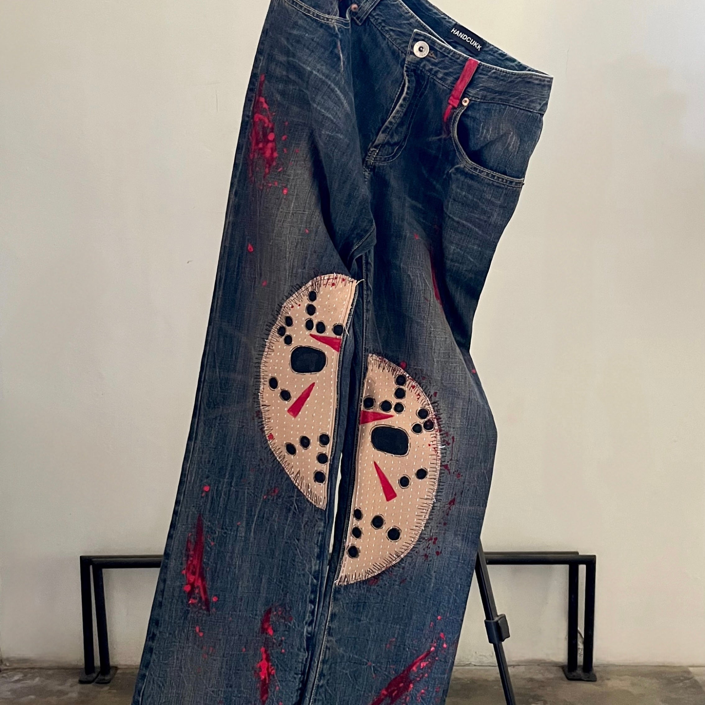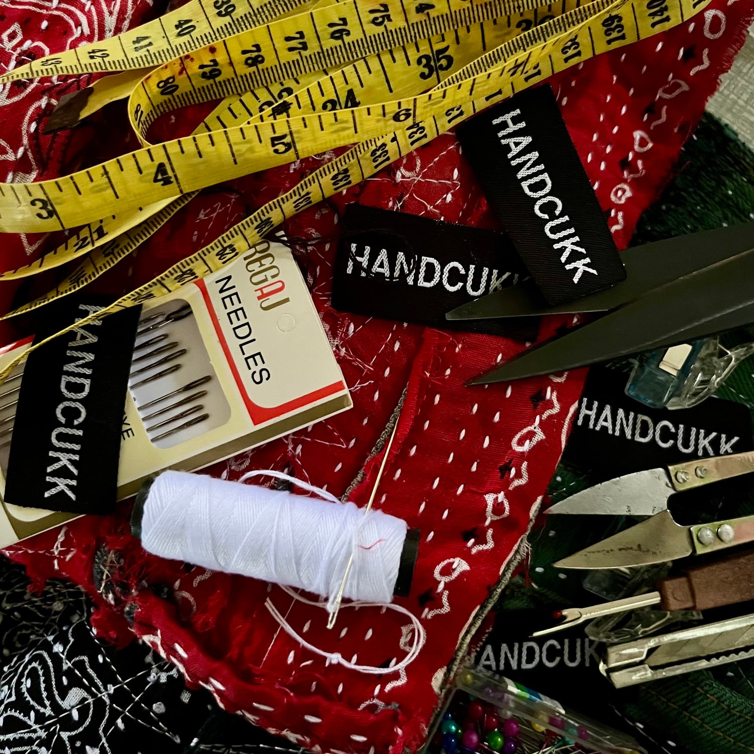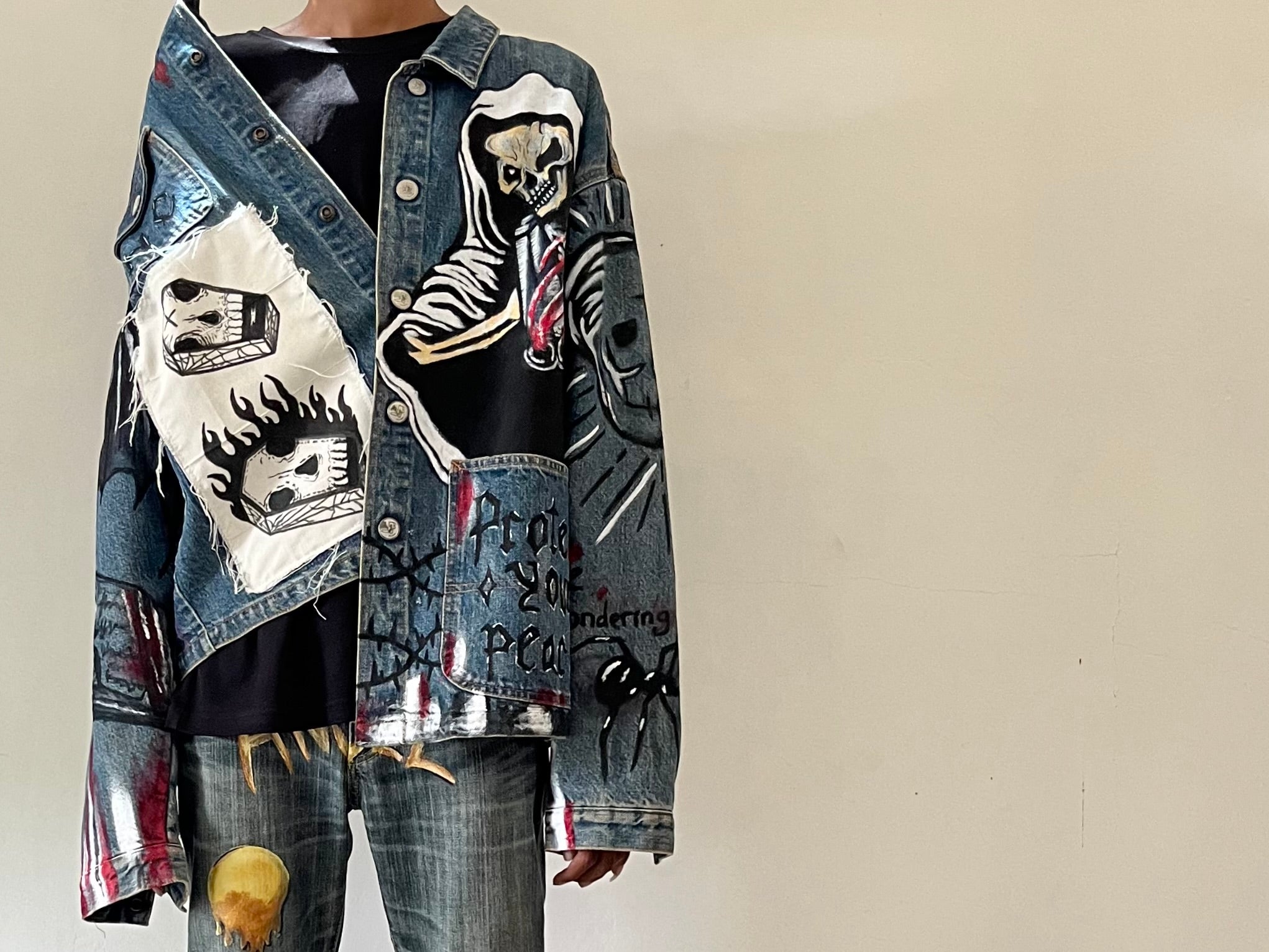 Every garment is custom-made using the cut-and-sewn technique, which means each pattern piece is cut individually and constructed from scratch. This allows for a perfect fit and unique design, resulting in a garment that is truly one-of-a-kind. I use sustainable fabrics hand selected from thrift and my past custom hand painted clothes.