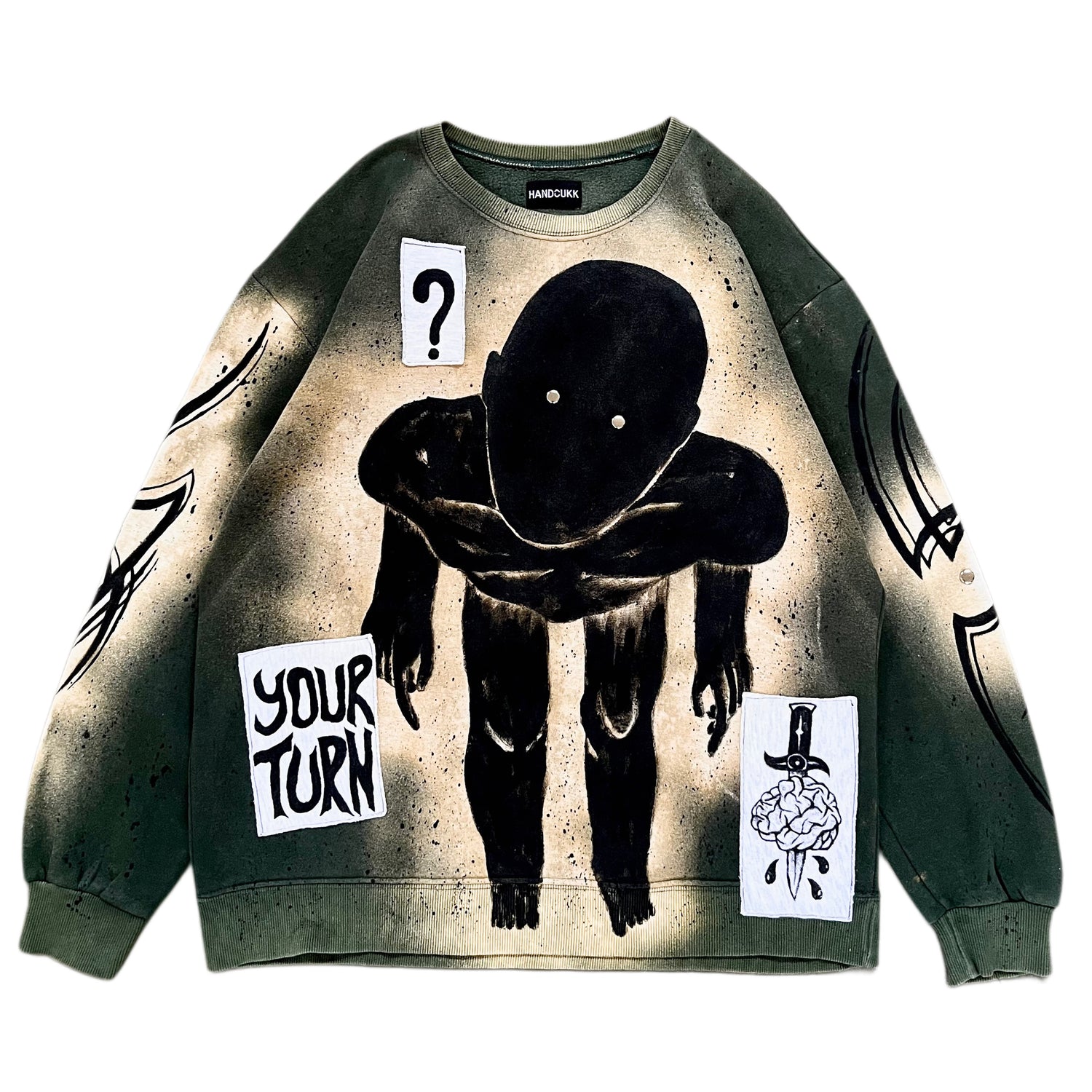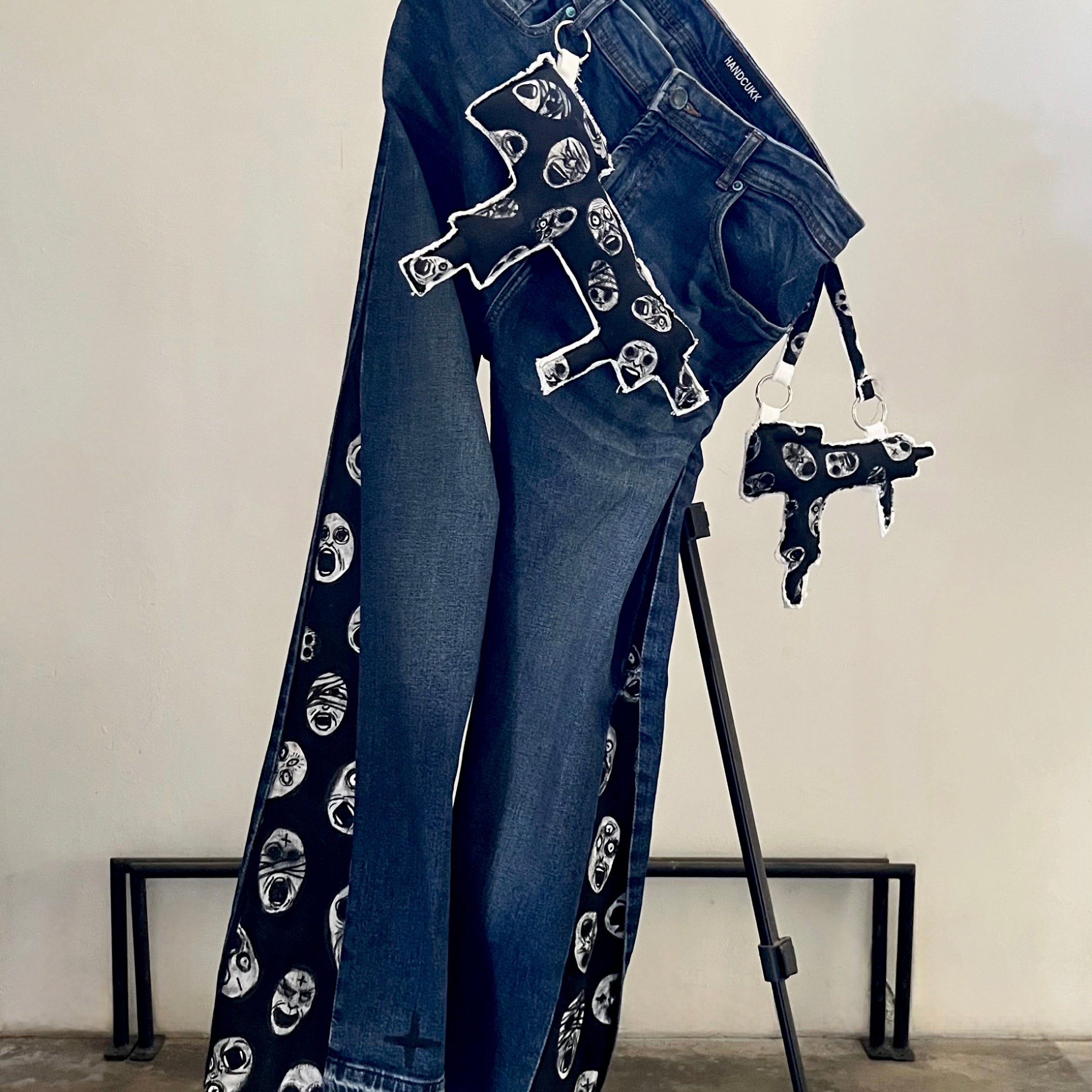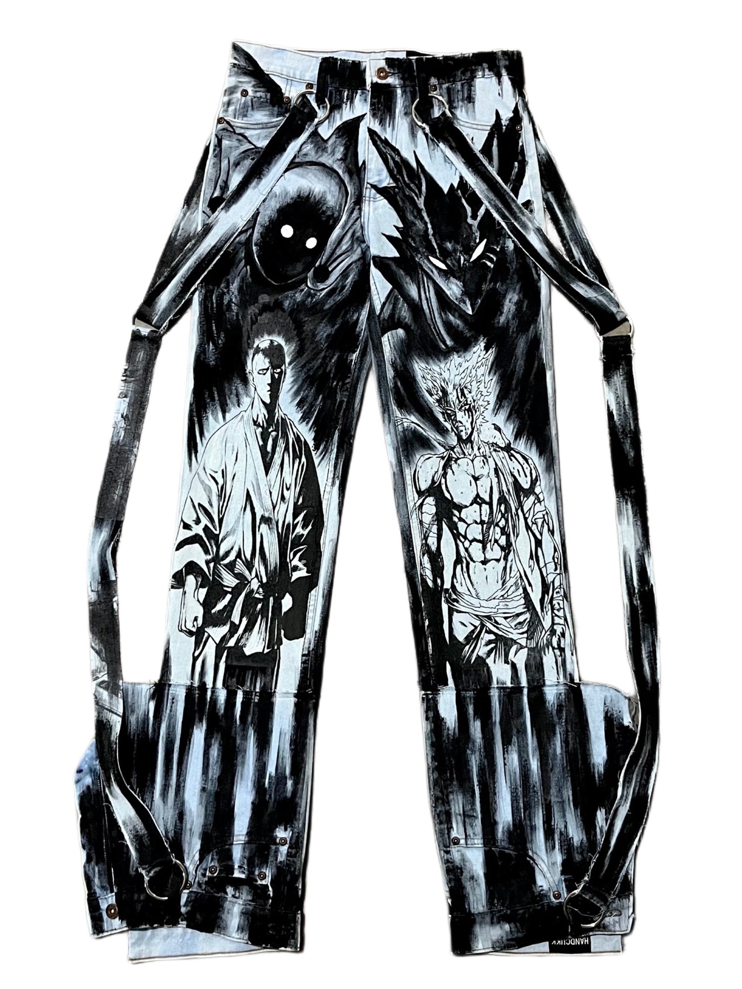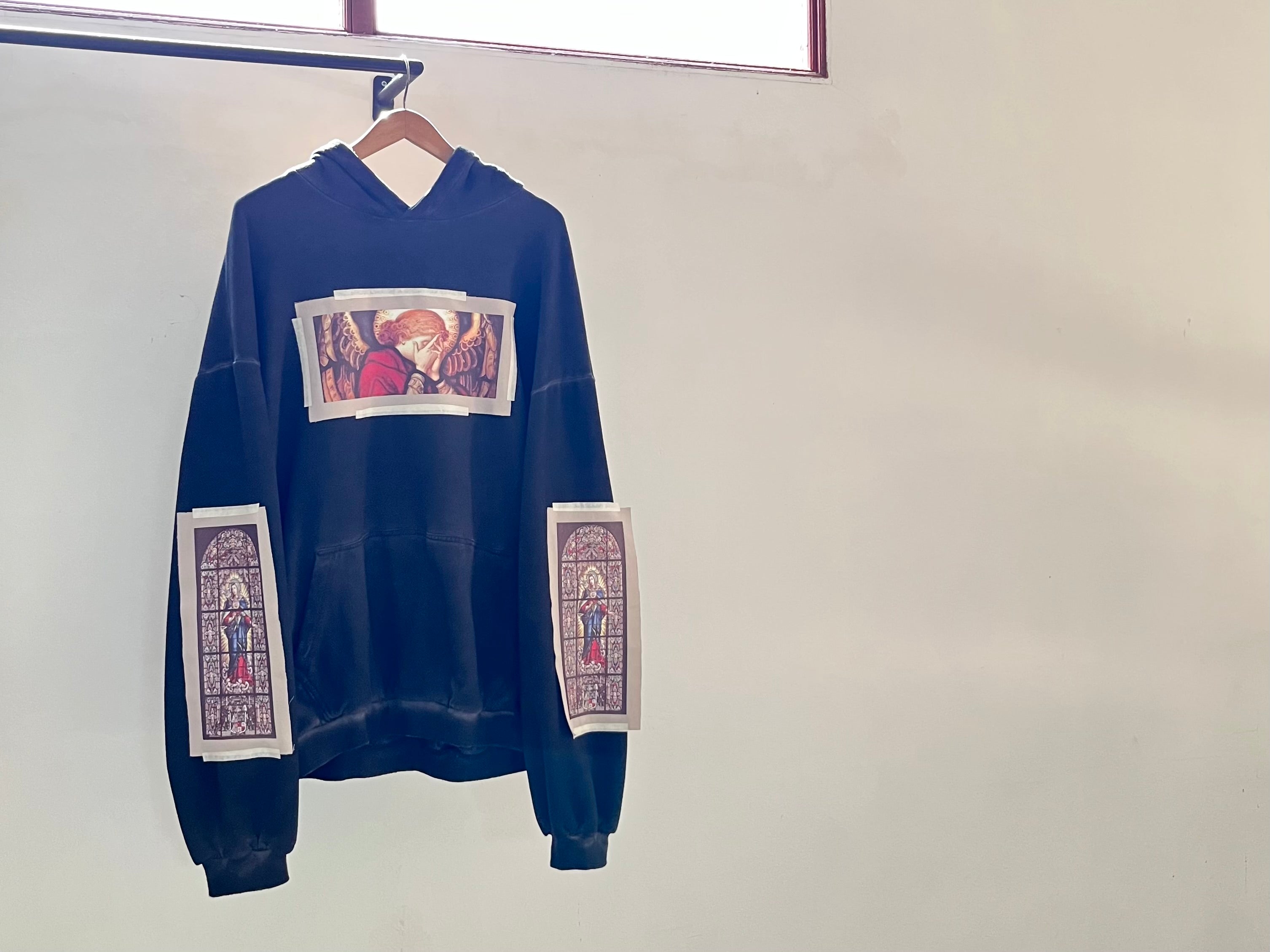 Every garment is custom-made using the cut-and-sewn technique, which means each pattern piece is cut individually and constructed from scratch. This allows for a perfect fit and unique design, resulting in a garment that is truly one-of-a-kind. I use sustainable fabrics hand selected from thrift and my past custom hand painted clothes.