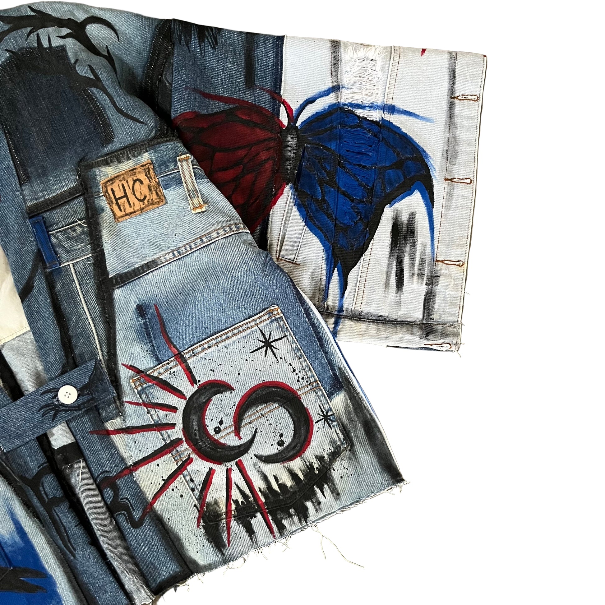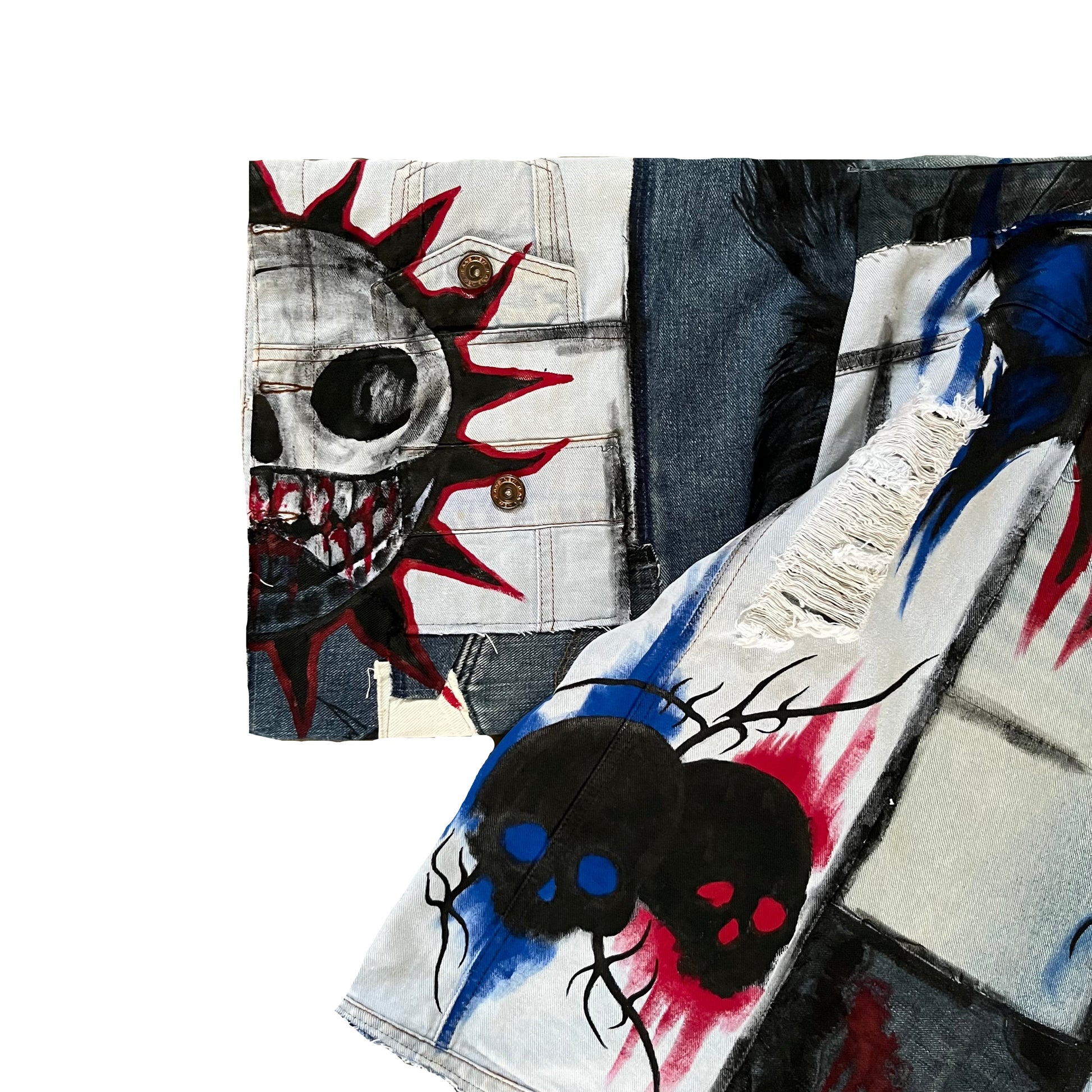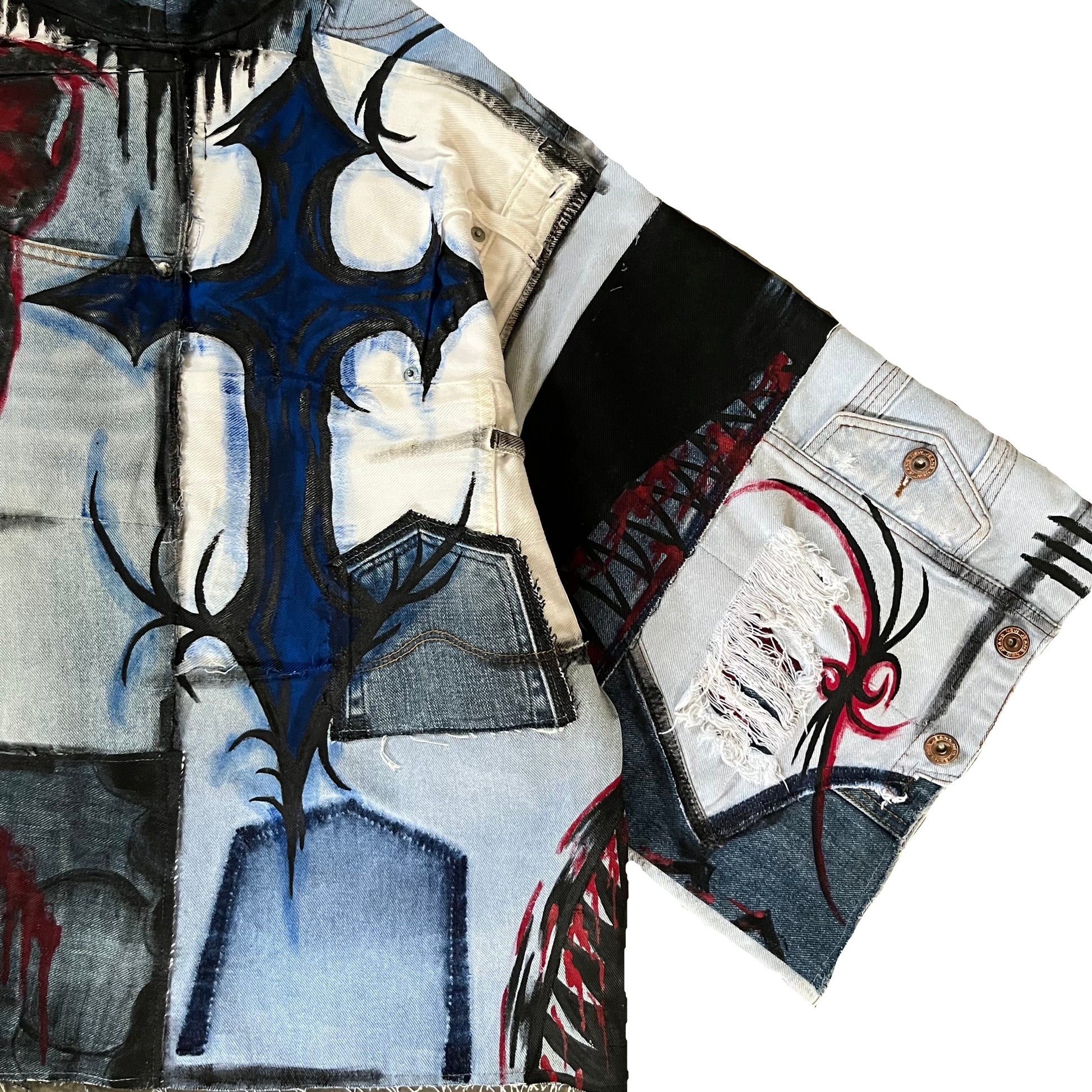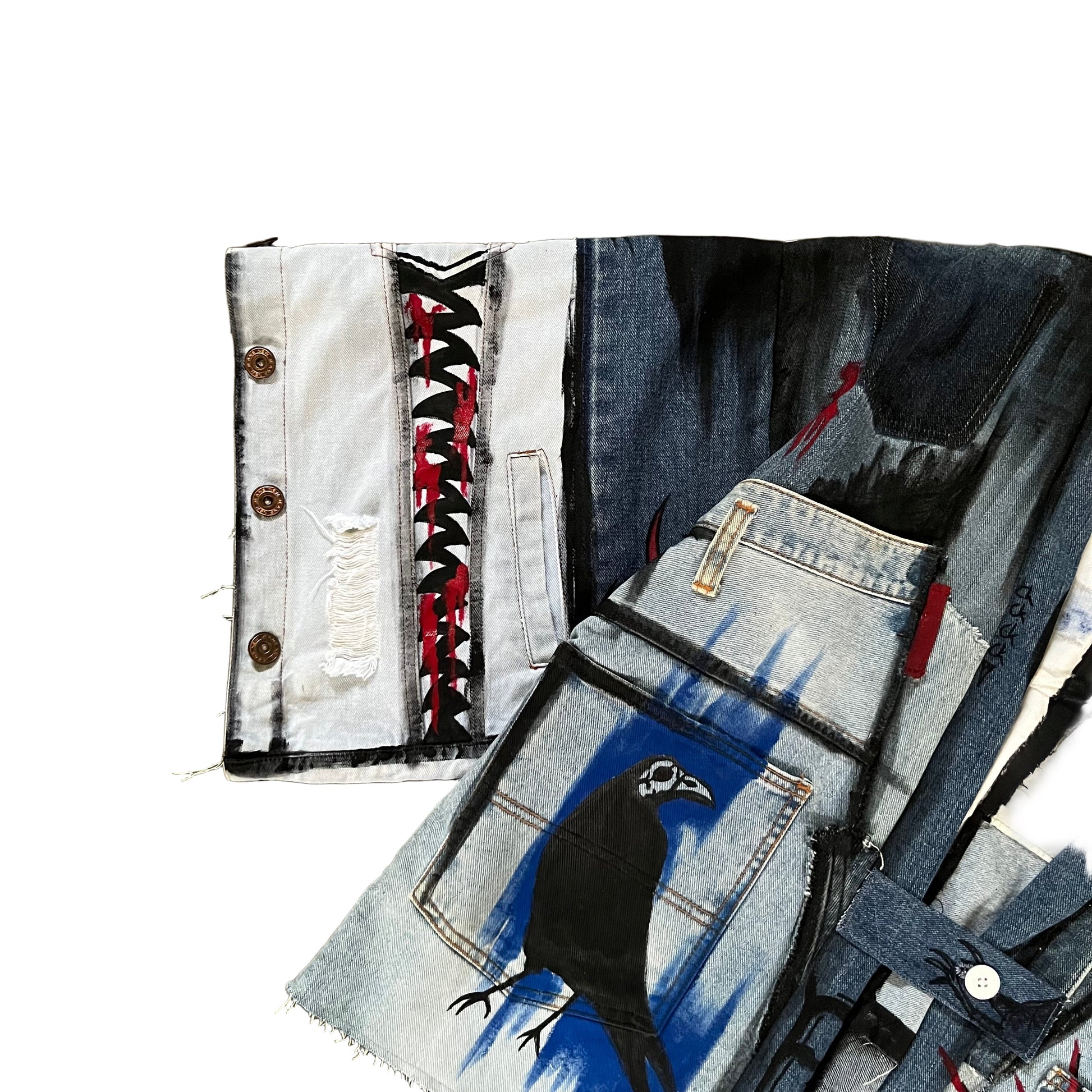 Made from scratch using bunch of scrap jeans, including denim jacket and denim pants